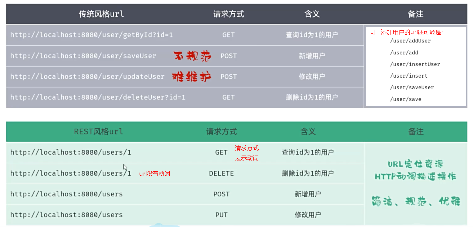 | http://localhost:8080/users/1 | GET | 查询id为1的用户 |