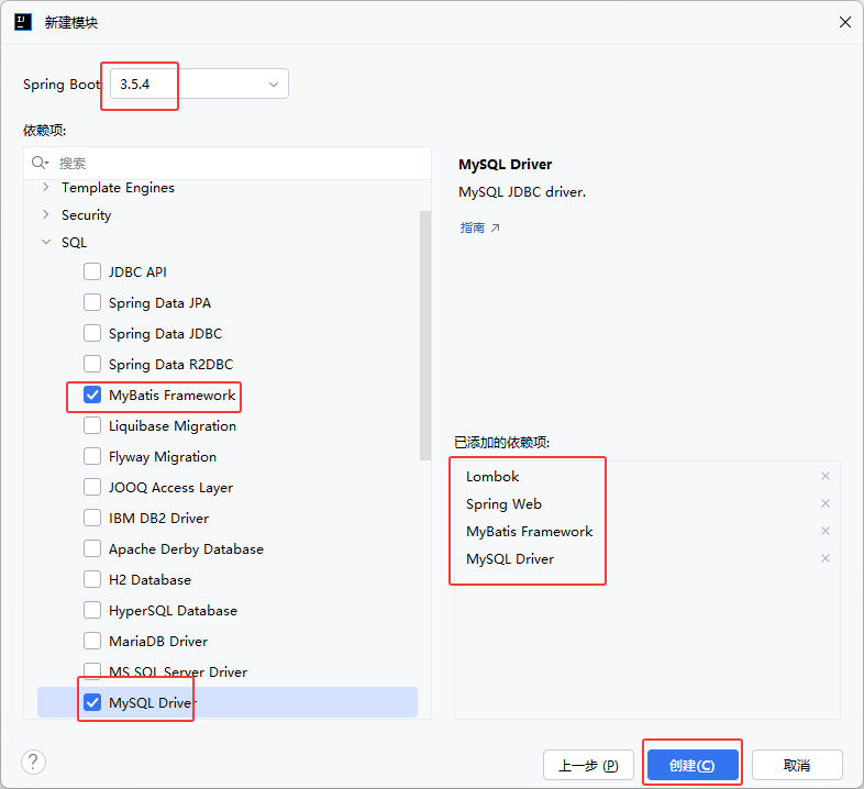 - 创建空项目(工作空间web-ai-project02),创建SpringBoot工程(模块tlias-web-management),并引入web开发起步依赖、mybatis、mysql驱动、lombok。