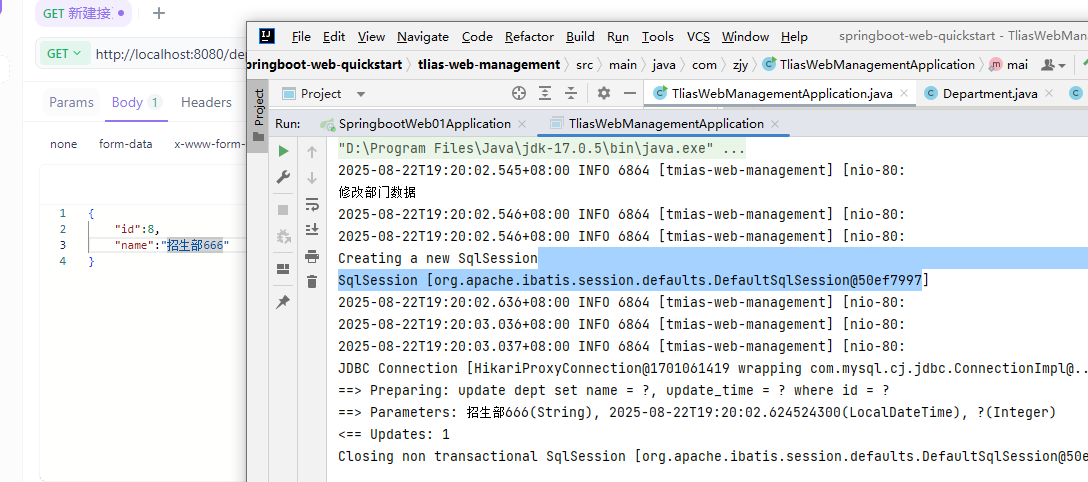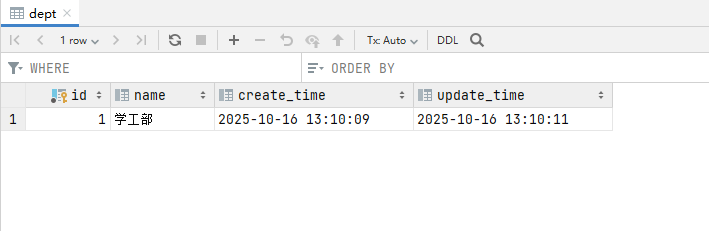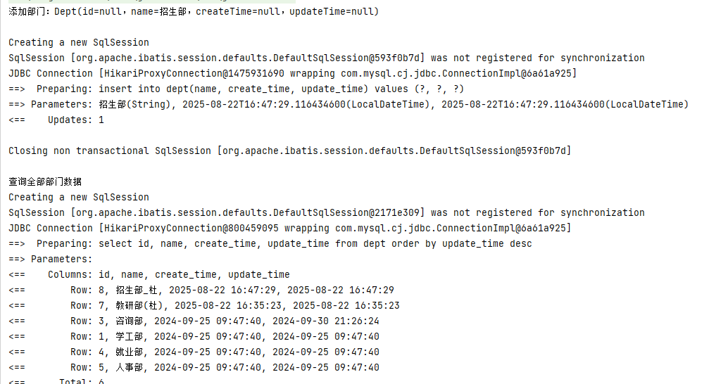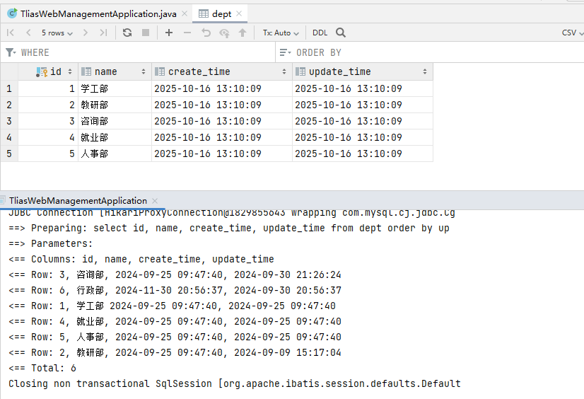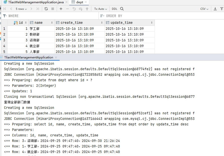 - 创建数据库表dept,并在application.yml中配置数据库的基本信息。