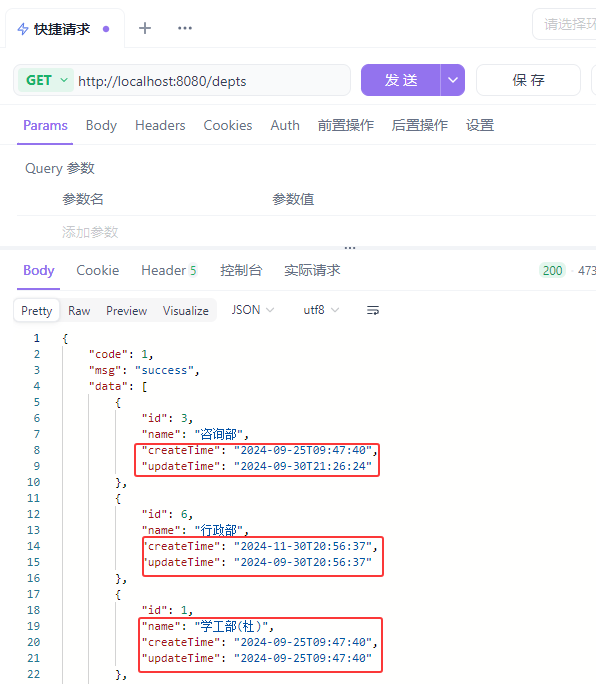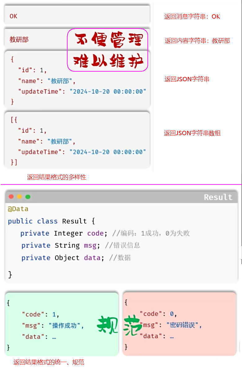 - 准备基础代码结构,并引入实体类Dept及统一的响应结果封装类 Result。