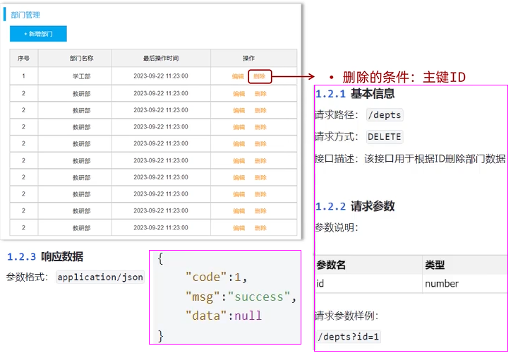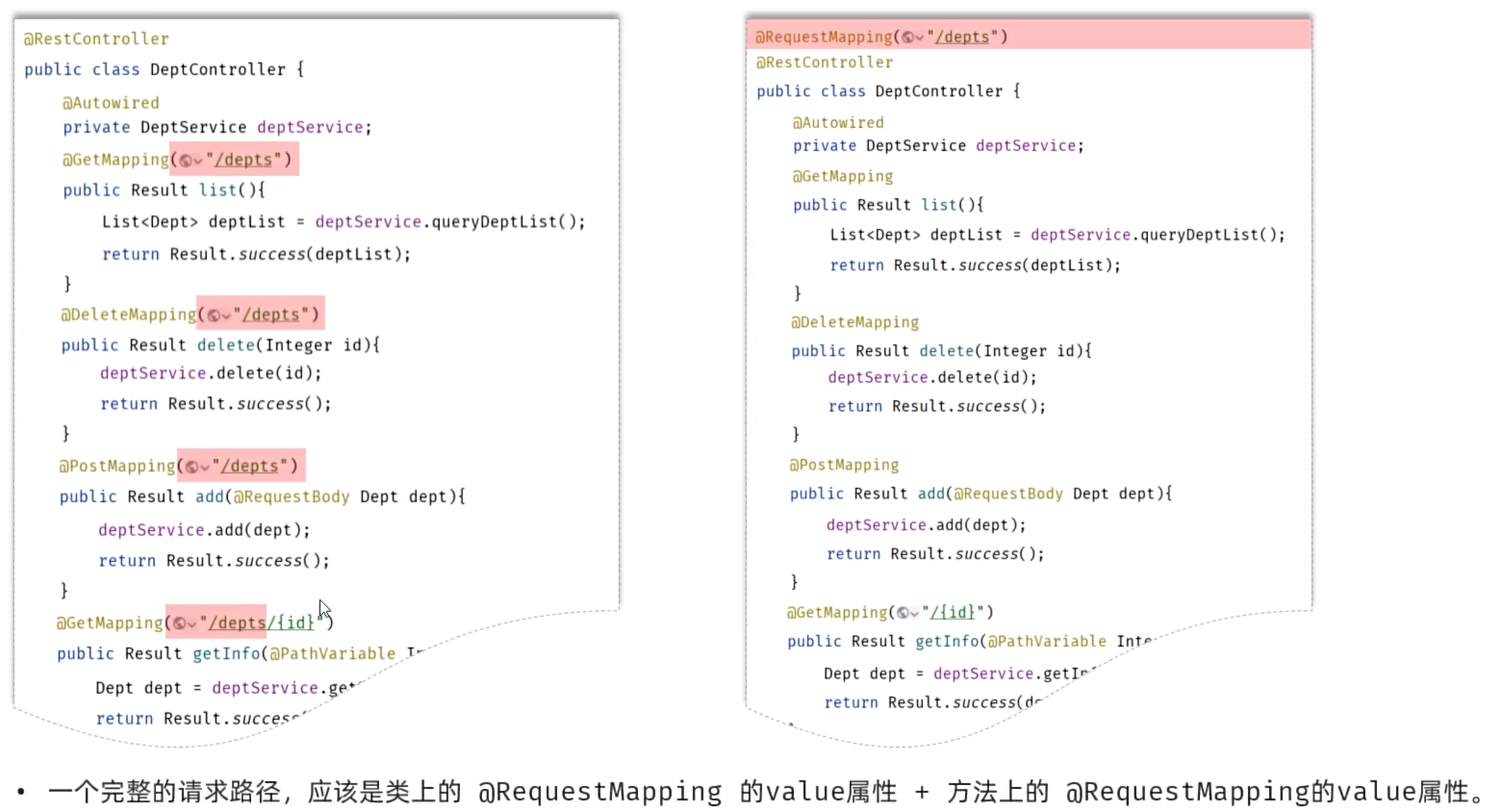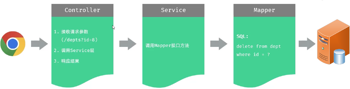 * 删除部门-方式三:省略@RequestParam(前端传递的请求参数名与服务端方法形参名一致)