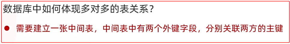 - 一对多的关系如何实现? 在数据库表中多的一方,添加字段,来关联一的一方的主键。