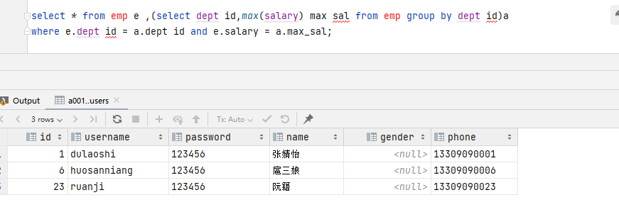 <select id="list3" resultType="cn.zjy.pojo.Emp">