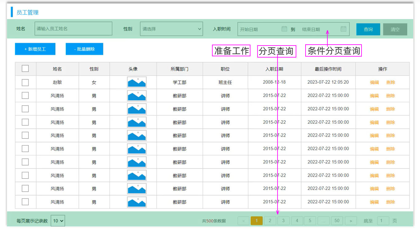 public PageResult<Emp> page3(Integer page, Integer pageSize, String name, Integer gender, LocalDate begin, LocalDate end){