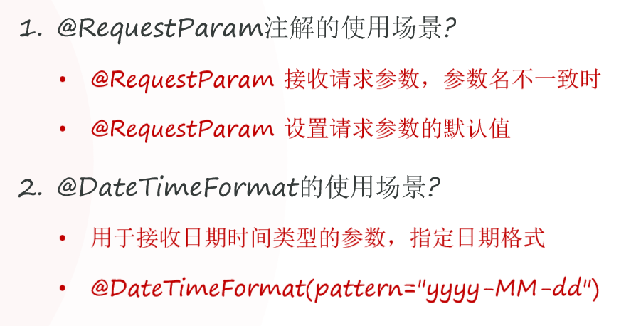- 用于接收日期时间类型的参数,指定日期格式 @DateTimeFormat(pattern="yyyy-MM-dd")