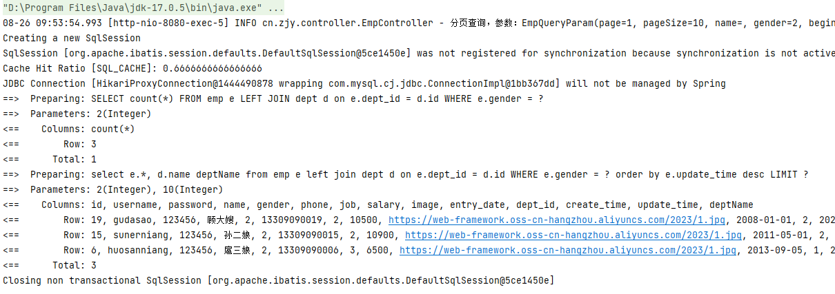 List<Emp> empList = empMapper.list3(name, gender, begin, end);