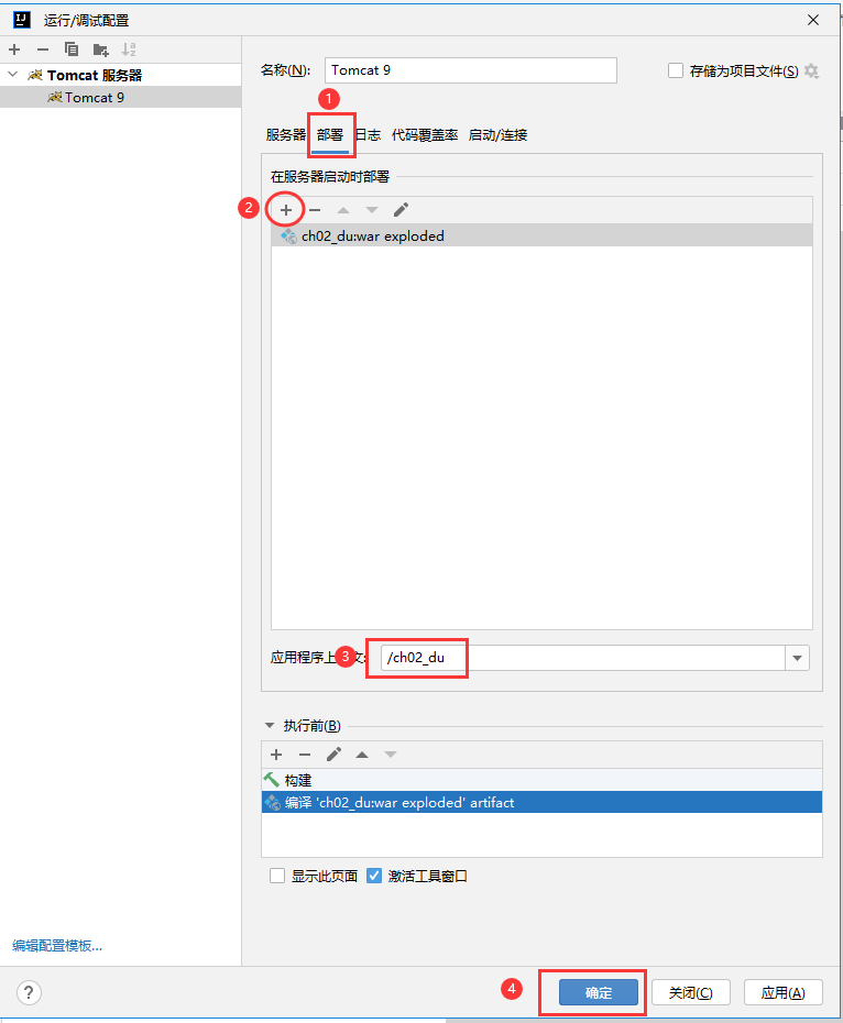 (15) 在Deployment配置项界面中,单击”Deployment ",单击右侧【+】→【Artifact】将项目部署在Tomcat,修改应用程序上下文为/ch02_zjy。
