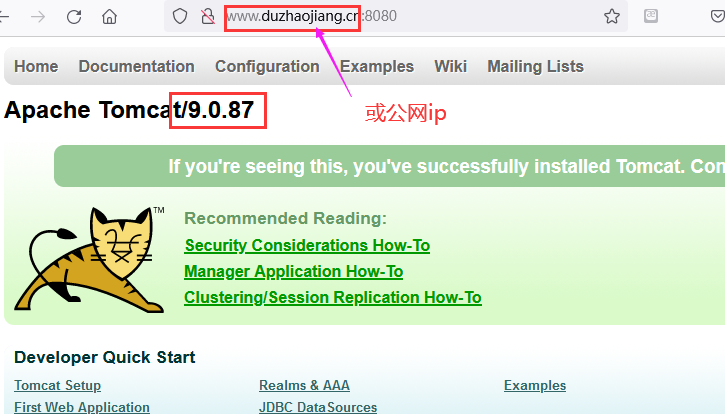 # 打开浏览器,输入http://公网ip:8080,是否可以打开网页