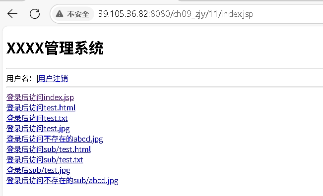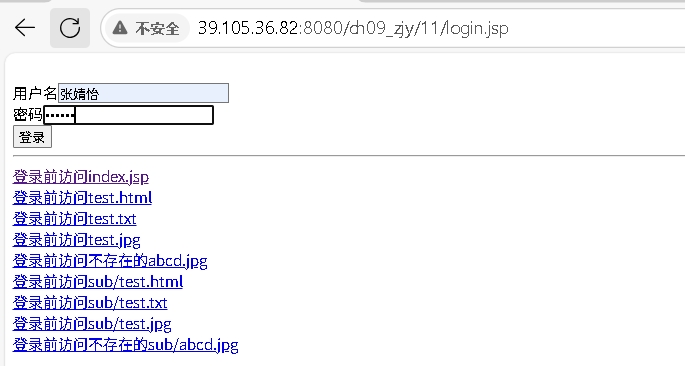 <a href="11/index.jsp">11. Login过滤器(只有登录的用户才能访问/ch09_zjy/11/目录及其子目录的资源)</a><br>