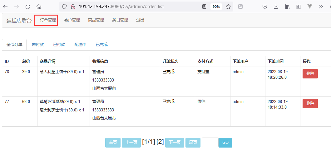 - 设计网站后台,用于管理网站的各项基本数据,包括订单管理、商品管理、用户管理以及商品类目。